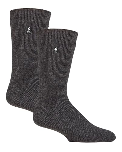 HEAT HOLDERS 2 Pack Mens Thermal Socks Winter Warm Original Socks | Thick Fleece Insulated Socks (6-11, Charcoal)