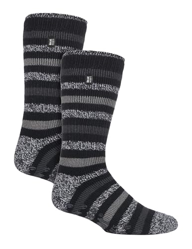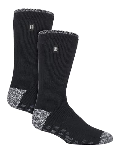 HEAT HOLDERS 2 Pack Mens Slipper Socks with Grippers Winter Anti slip Cosy Socks | Fleece Warm Socks (6-11, Black)