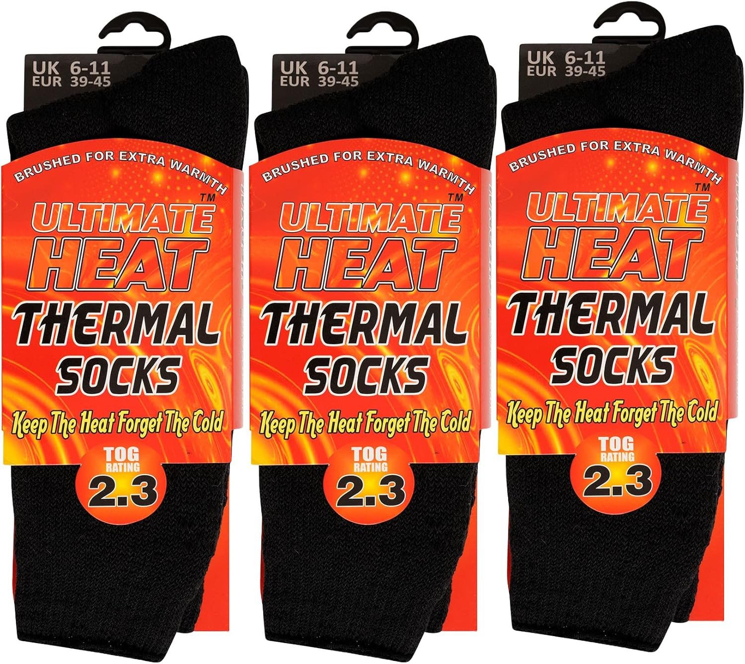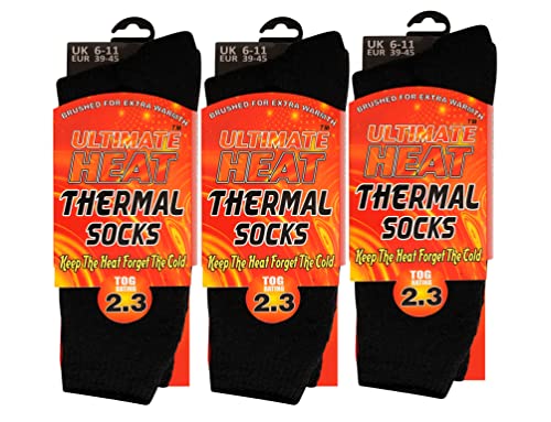 Heat Stoke®️ Pack of 3 Mens Thermal Plain Socks for Winter Thick Warm Fluffy Insulated Socks (UK, Numeric, 6, 11, Regular, Regular, BLACK)