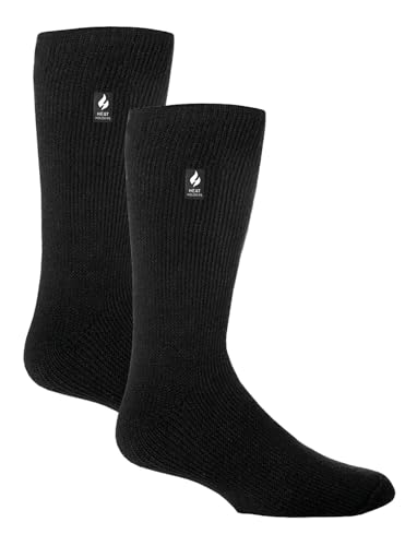 HEAT HOLDERS 2 Pack Mens Thermal Socks Winter Warm Original Socks | Thick Fleece Insulated Socks (6-11, Black)