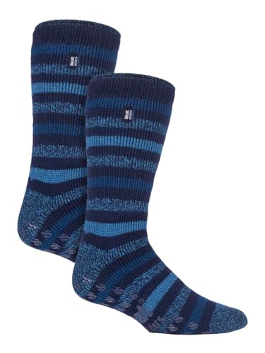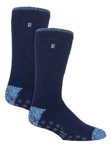 HEAT HOLDERS 2 Pack Mens Slipper Socks with Grippers Winter Anti slip Cosy Socks | Fleece Warm Socks (6-11, Navy/Denim)