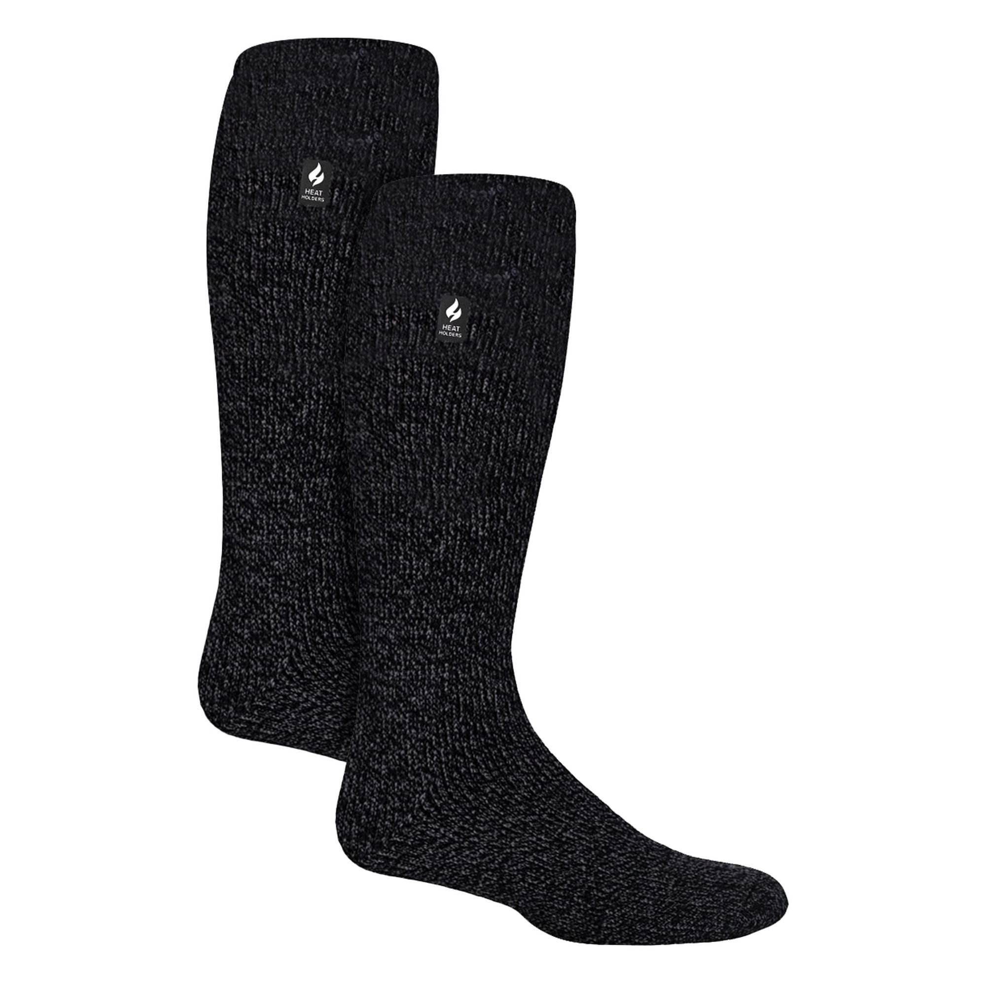 HEAT HOLDERS 2 Pack Mens Knee High Thermal Socks Warm Thermal Cosy Long Socks for Winter (6-11, Black)