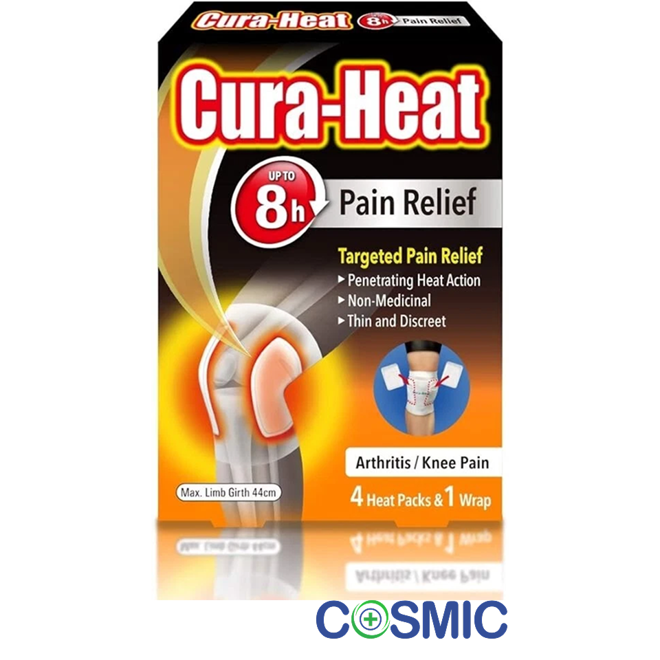 Cura-heat Arthritis Pain for Knee 4 Heat packs and 1 Wrap