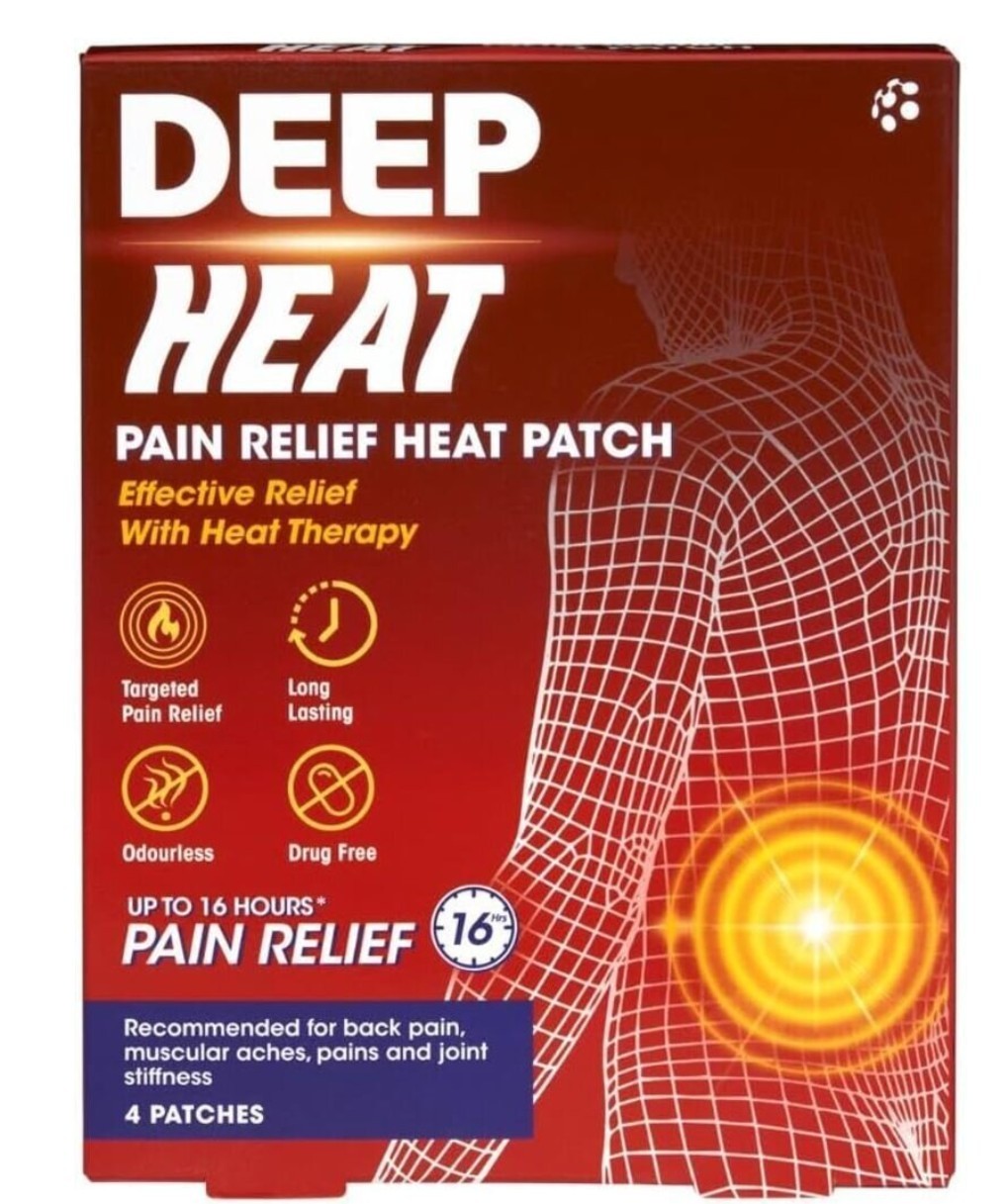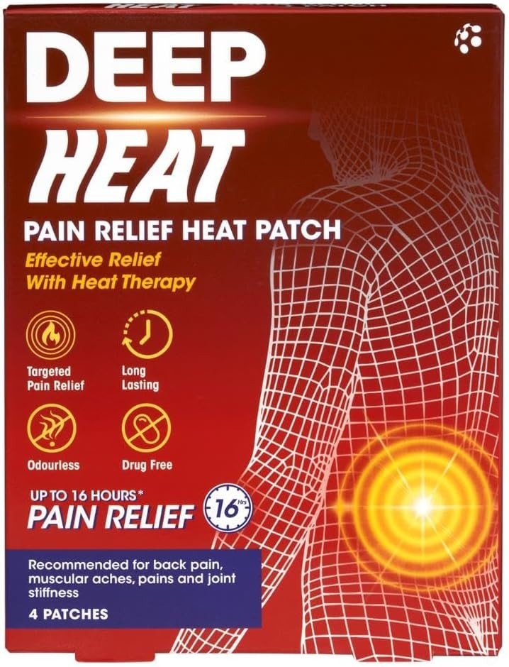 Deep Heat Pain Relief Heat Patch, Muscular Aches, Pains, Joint Stiffness 4 Pack
