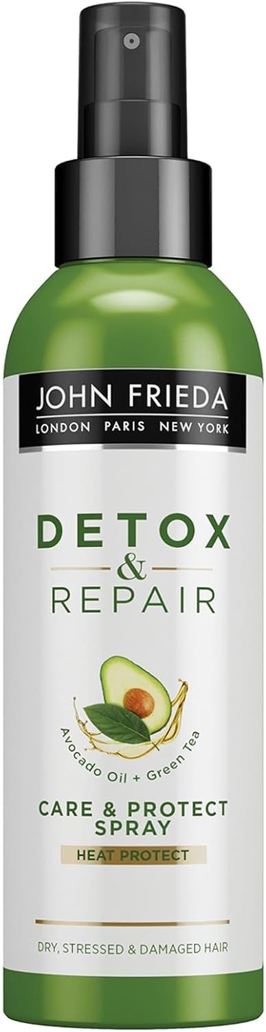 John Frieda Detox & Repair Care Heat Protect Spray for Dry, STRESSED Damaged Hair with Avocado Oil and Green Tea, 200 ml