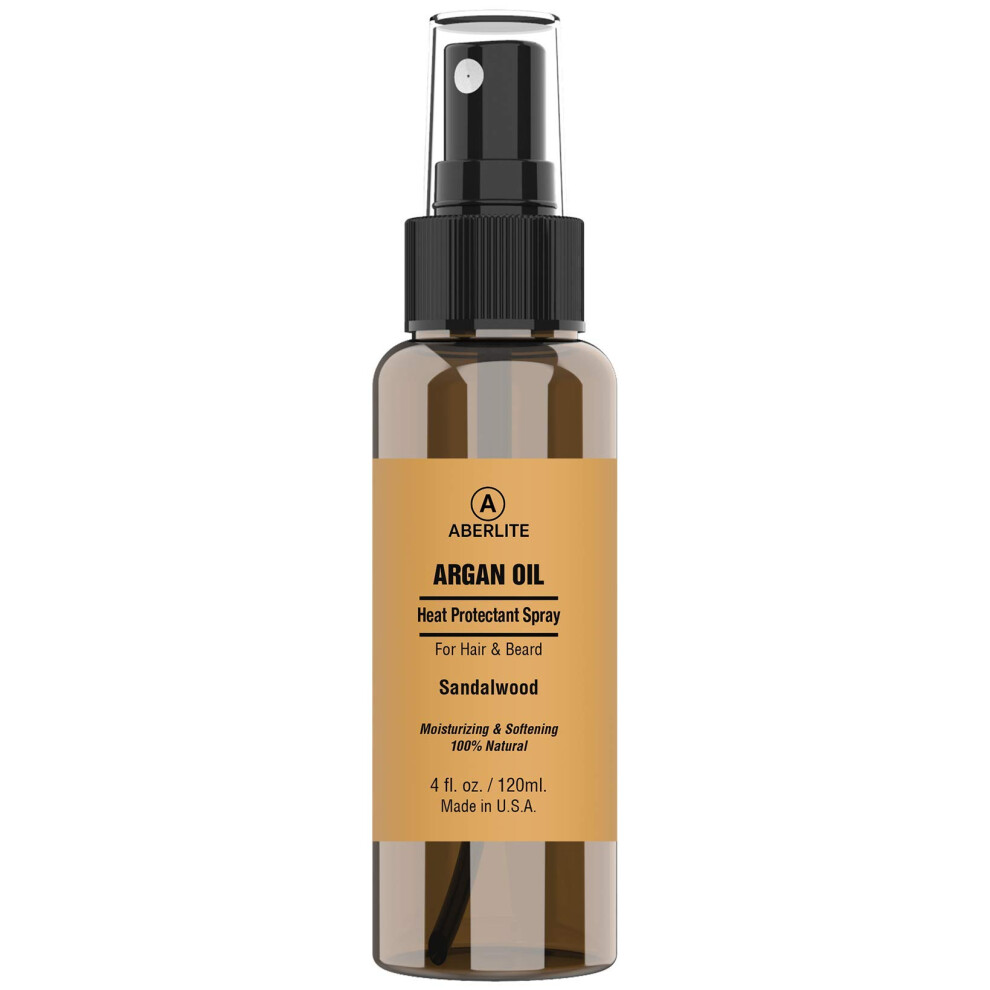 Aberlite Heat Shield Heat Protectant Spray 4oz - Argan Oil Scent Moisturizes Softens and Protects Hair from Heat Damage Made with 100% Natural Ing