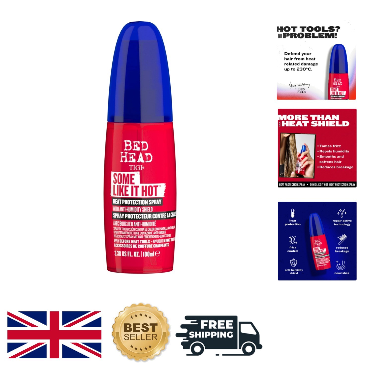 Professional Bed Head Heat Protectant Spray – Anti-Frizz, 3.38 oz Grapefruit