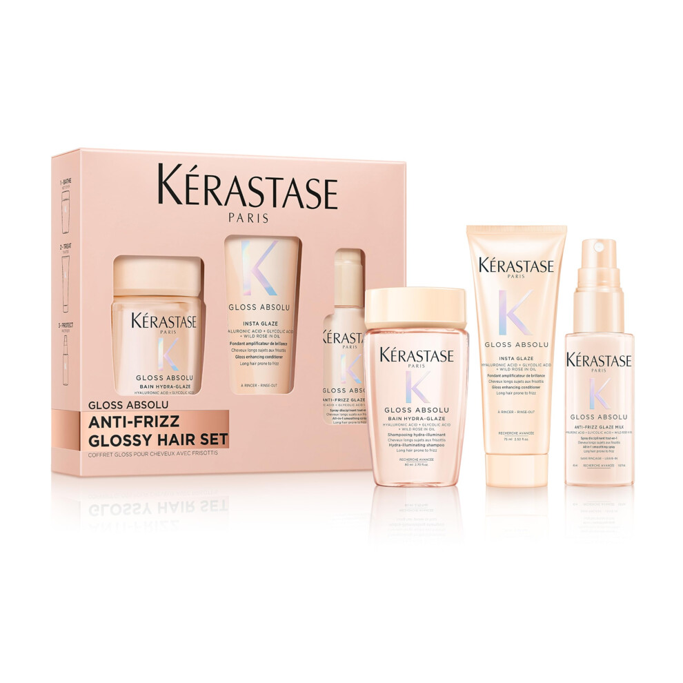 K?rastase Gloss Absolu Trio Discovery Set, containing travel sized Shampoo, Conditioner and Heat Protectant Spray, Anti-Frizz, Hydrating,