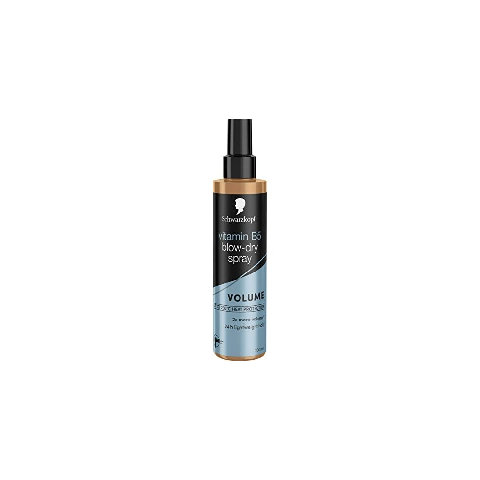 Schwarzkopf Styling Vitamin B5 Blow-Dry Hair Spray, Volume and Shine, 24hr hold, 100 degreeC heat protectant spray, 200ml, Pack of 1