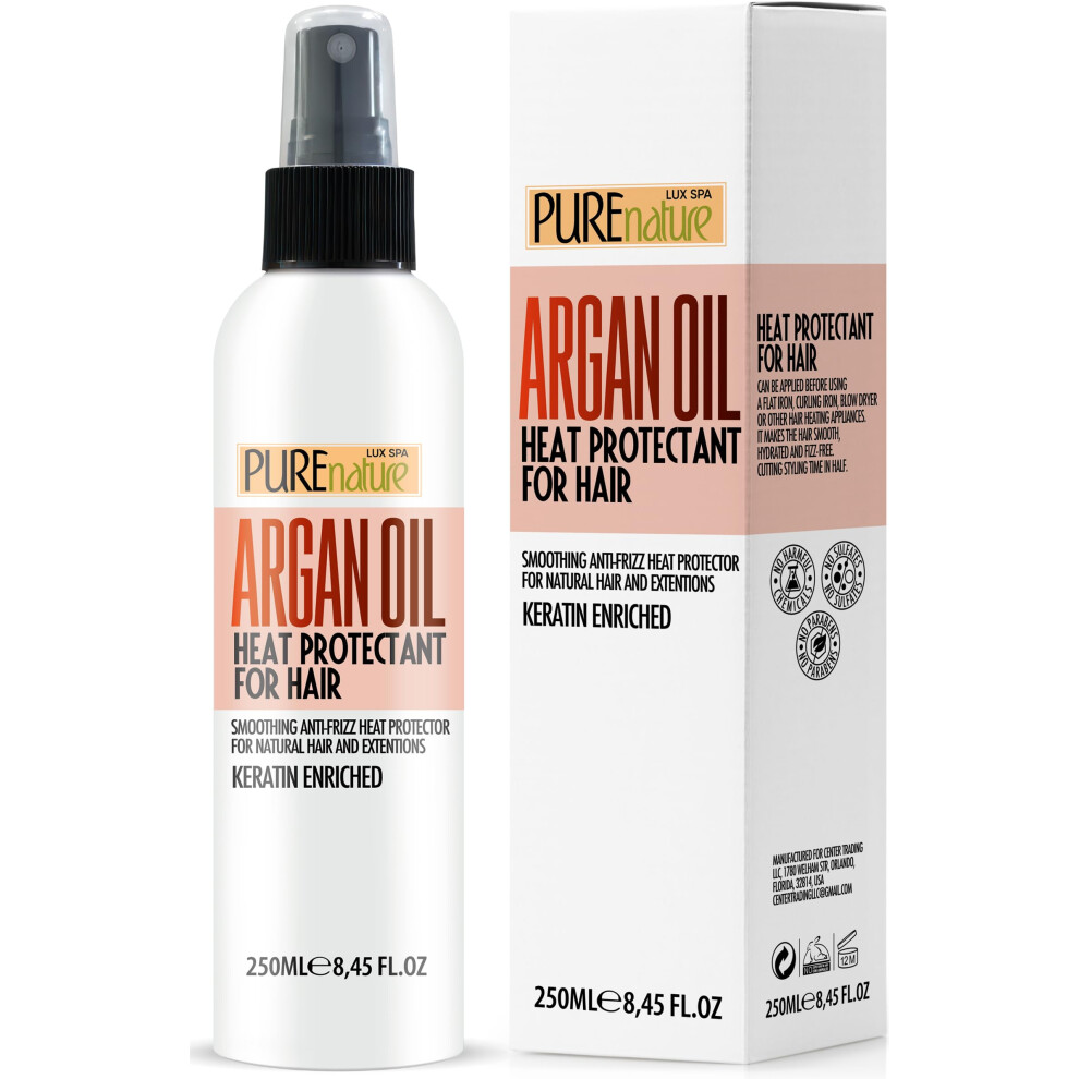 Moroccan Argan Oil Heat Protectant Spray for Hair - Leave In Thermal Guard against Flat Iron Straightener and Blow Dry Damage - Hydrating Anti Frizz