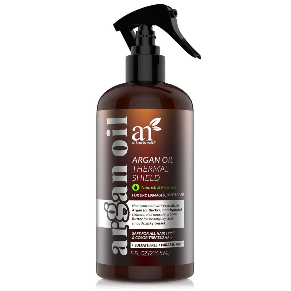 Artnaturals Thermal Hair Protector Spray - 8 Fl Oz / 236ml - Heat Protectant Spray against Flat Iron Heat - Argan Oil Preventing Damage Breakage and