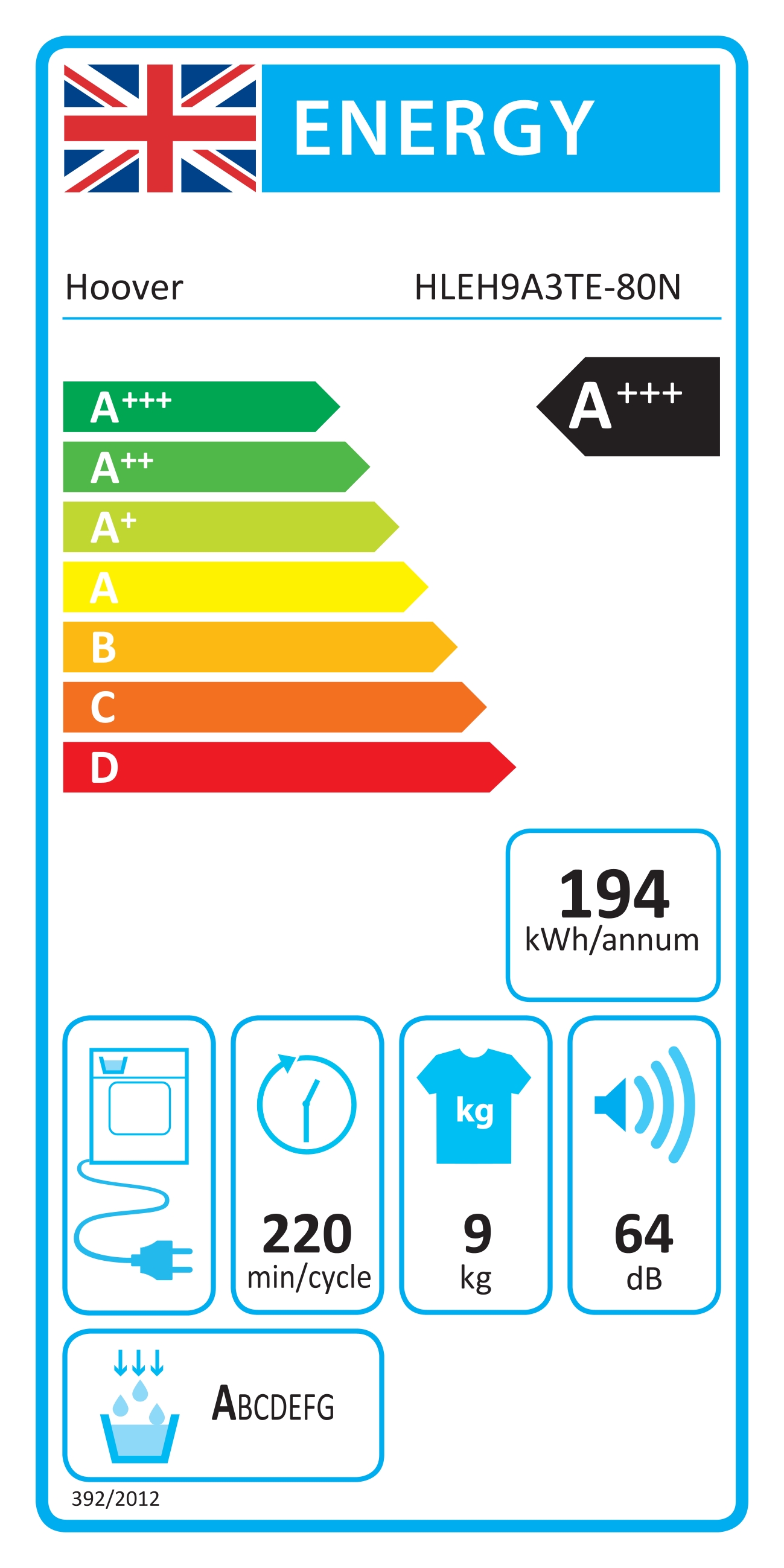 Hoover Pro Dry Series 3 HBR 9N2X-80 Wifi Connected 9Kg Heat Pump Tumble Dryer - White - A++ Rated