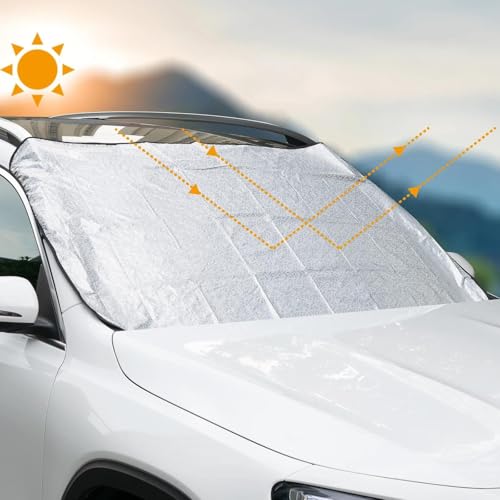 Porfeet Car Windshield Cover, Car Vehicle Windscreen Cover Heat Sun Shade Snow Frost Ice Shield Protector Silver
