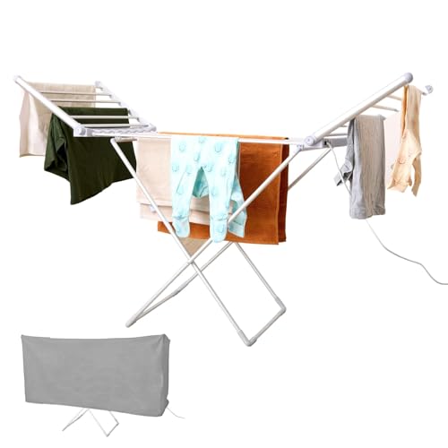 Easy Shopping® Electric Clothes Dryer, Heated Clothes Airer, 220V Energy-Efficient 18 rails Heated Airer, Clothes Airer, Cover Helps in Fast Drying, Foldable Easy Moveable