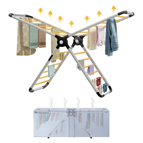 EPISENT Aero Dry Series X Heated Clothes Airer with Cover, 26 Heated Rails 320W Electric Indoor Drying Rack, Low Energy Winged Clothes Horse with 9 Hour Timer and Foldable Design
