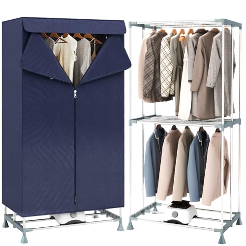 OYhmc 2600W Electric Clothes Dryer, Heated Clothes Airer with Cover, 2 Tier Indoor Electric Warm Air Drying Wardrobe, Large Capacity
