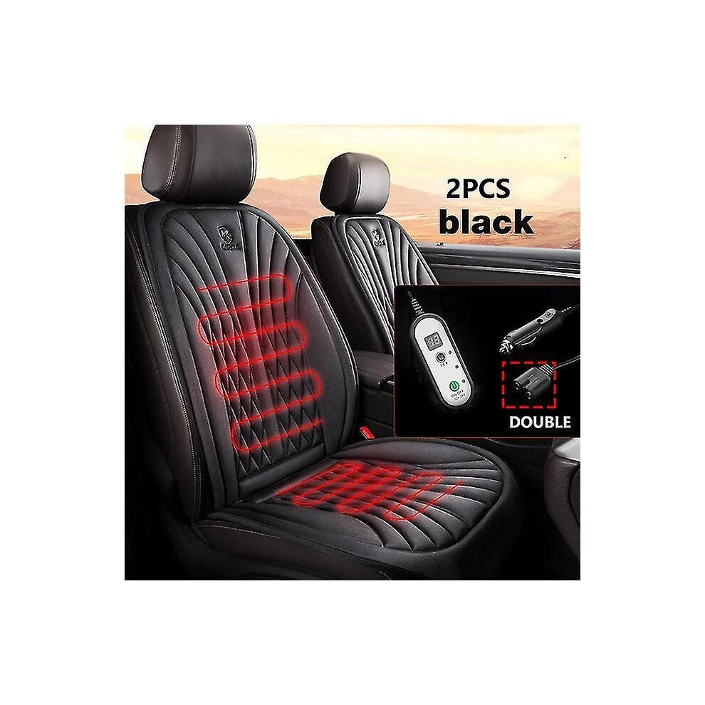 (Black 2pcs) Heated Car Seat Cover Universal Front Seat Heating Vehicle Seat Cushion