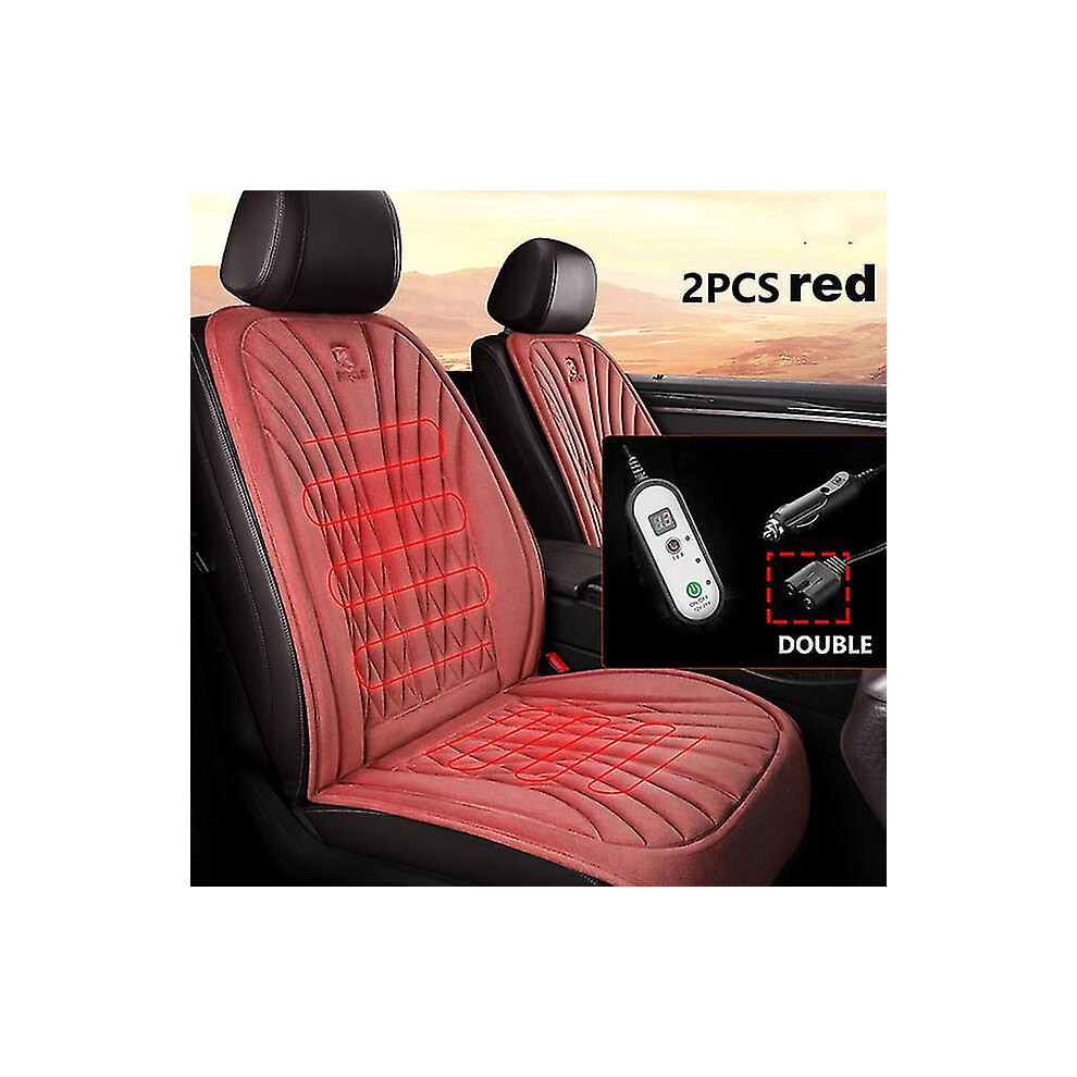 (2Pcs Double RED) 12/24v Heated Car Seat Cover 30 Fast Heating Seat Cushion Universal Car Seat Heater Thicken Lengthen Widen Flannel Heating Pad