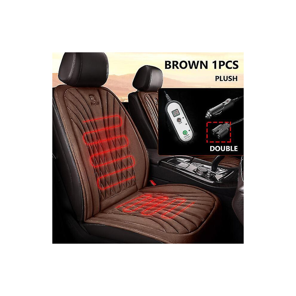 (1Pcs Double BROWN) 12/24v Heated Car Seat Cover 30 Fast Heating Seat Cushion Universal Car Seat Heater Thicken Lengthen Widen Flannel Heating Pad