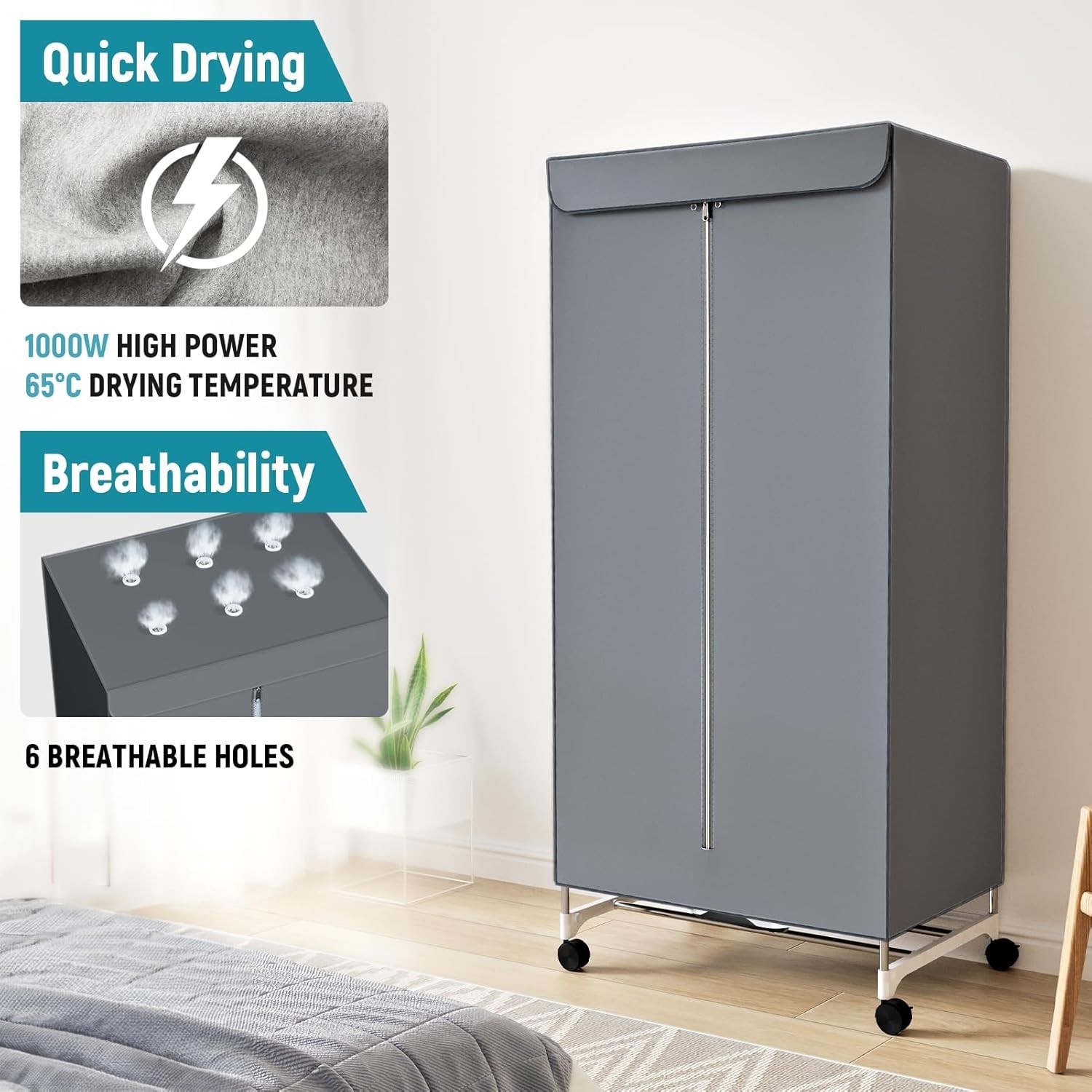 KASYDoFF Portable Heated Clothes Airer, 1000W Heated Clothes Airer with Cover, Travel Electric Clothes Dryer with 6H Timer, Electric Clothes Dryer for Apartments, Dorms, RVs