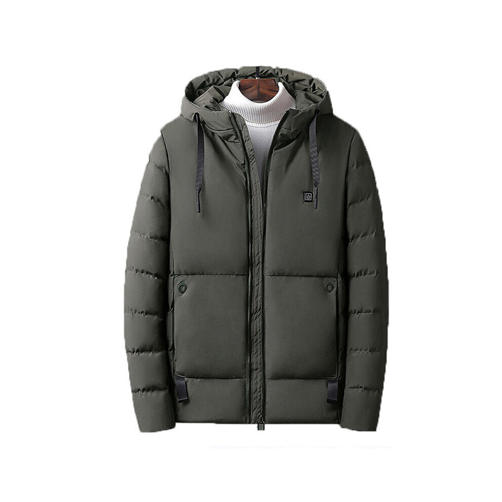 (Green, XL) Men Electric USB Heated Hooded Warm Overcoat Heating Coat Winter Coats Jacket