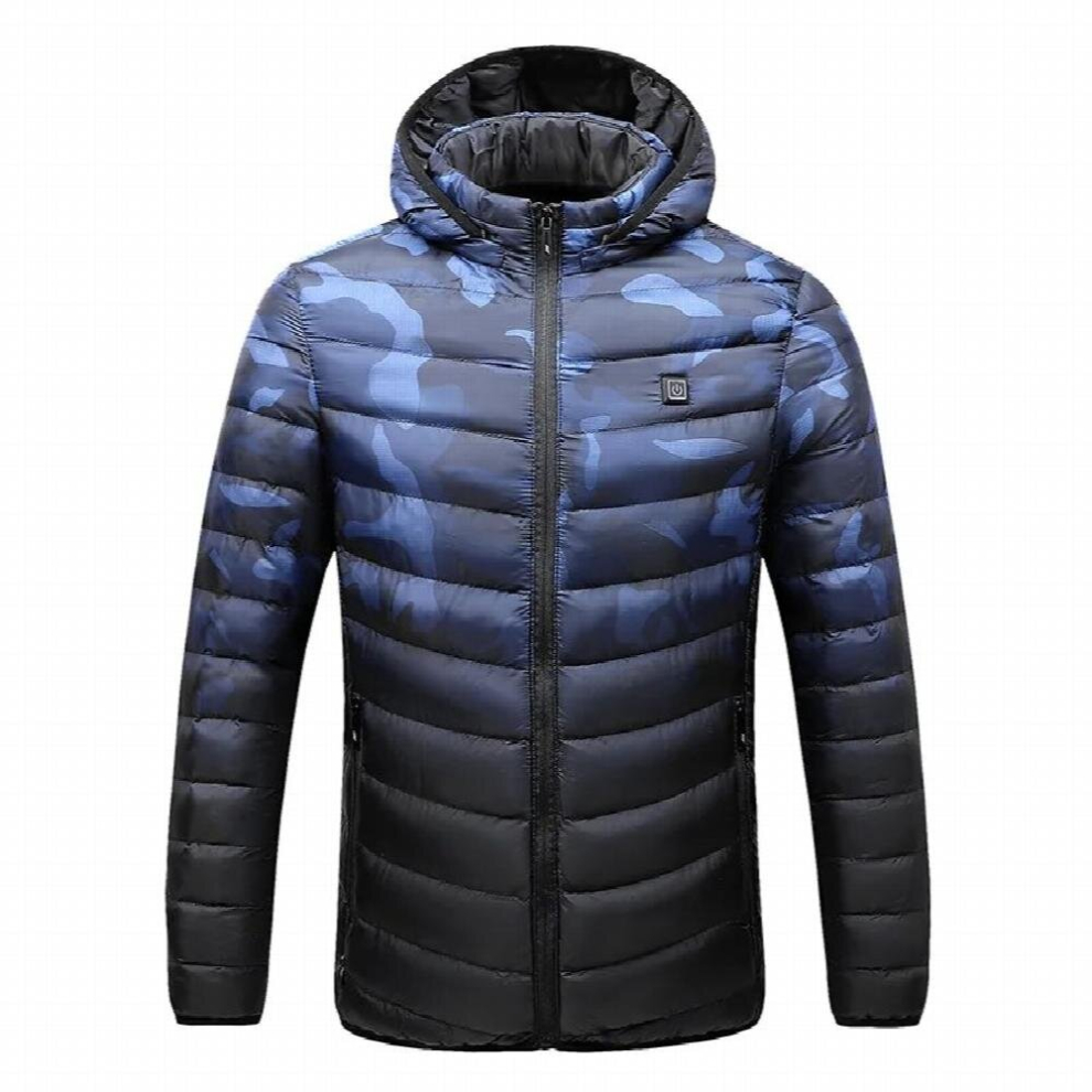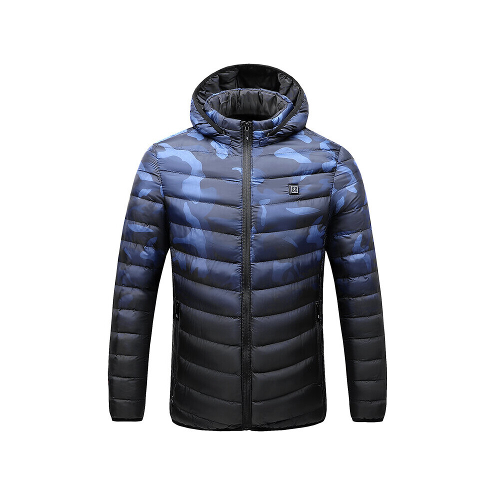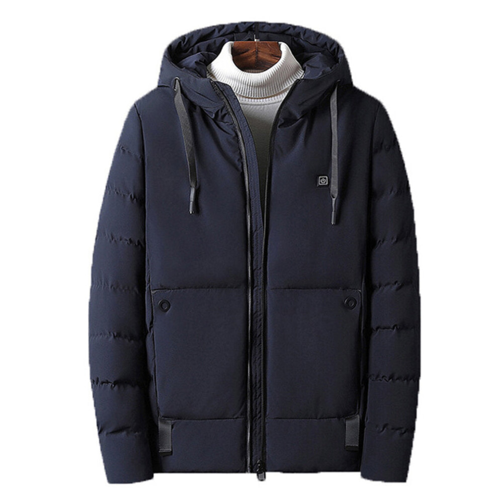 (Blue, XL) Men Electric USB Heated Hooded Warm Overcoat Heating Coat Winter Coats Jacket