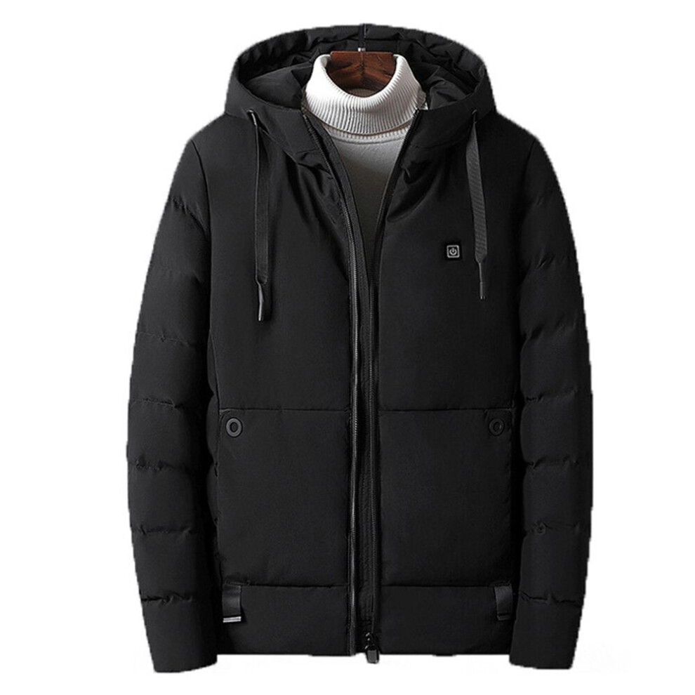 (Black, XL) Men Electric USB Heated Hooded Warm Overcoat Heating Coat Winter Coats Jacket