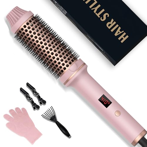 38mm Thermal Brush, Ceramic Hot Curling Brush, LCD Display 10 Temps 120-210℃, Volumizing Heated Round Brush, Double Voltage Lightweight Hot Brushes for Hairstyle- Curly, Straight, Comb (Pale Pink)