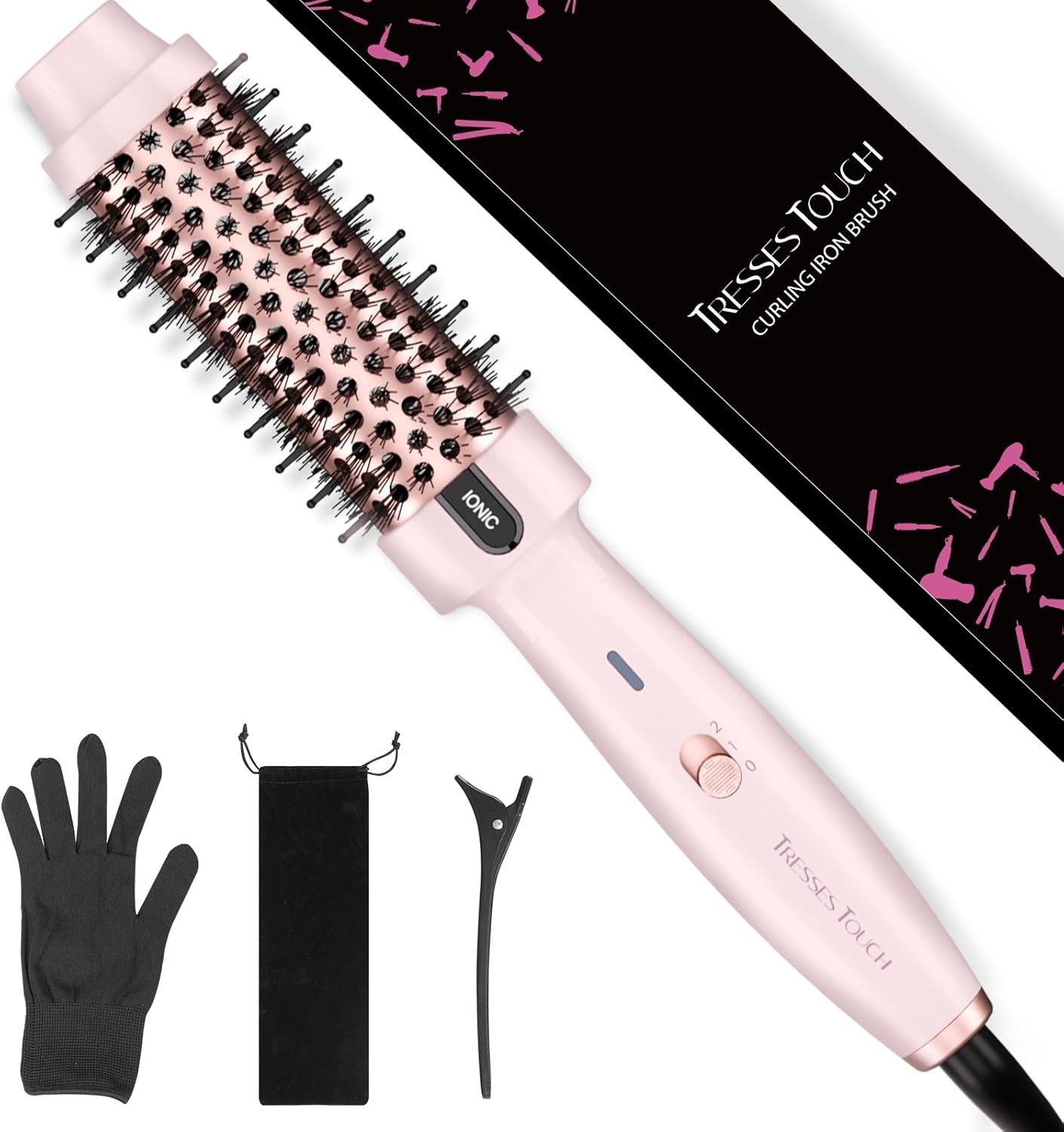 Tresses Touch 1.77 Inch Thermal Brush, Round Heated Hot Brush Blowout Ionic, Curling Brushes for All Hair, 2 Temperature Setting, Universal Voltage for Travel, Dual PTC, Not for Blow Drying, Rose Gold