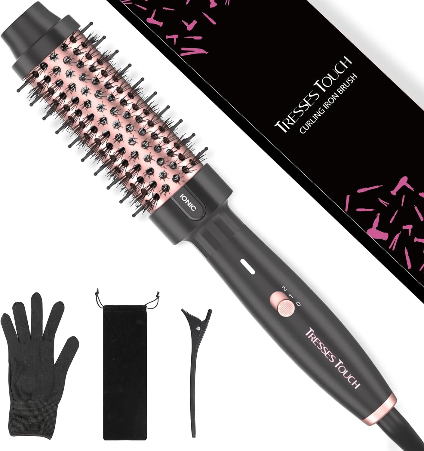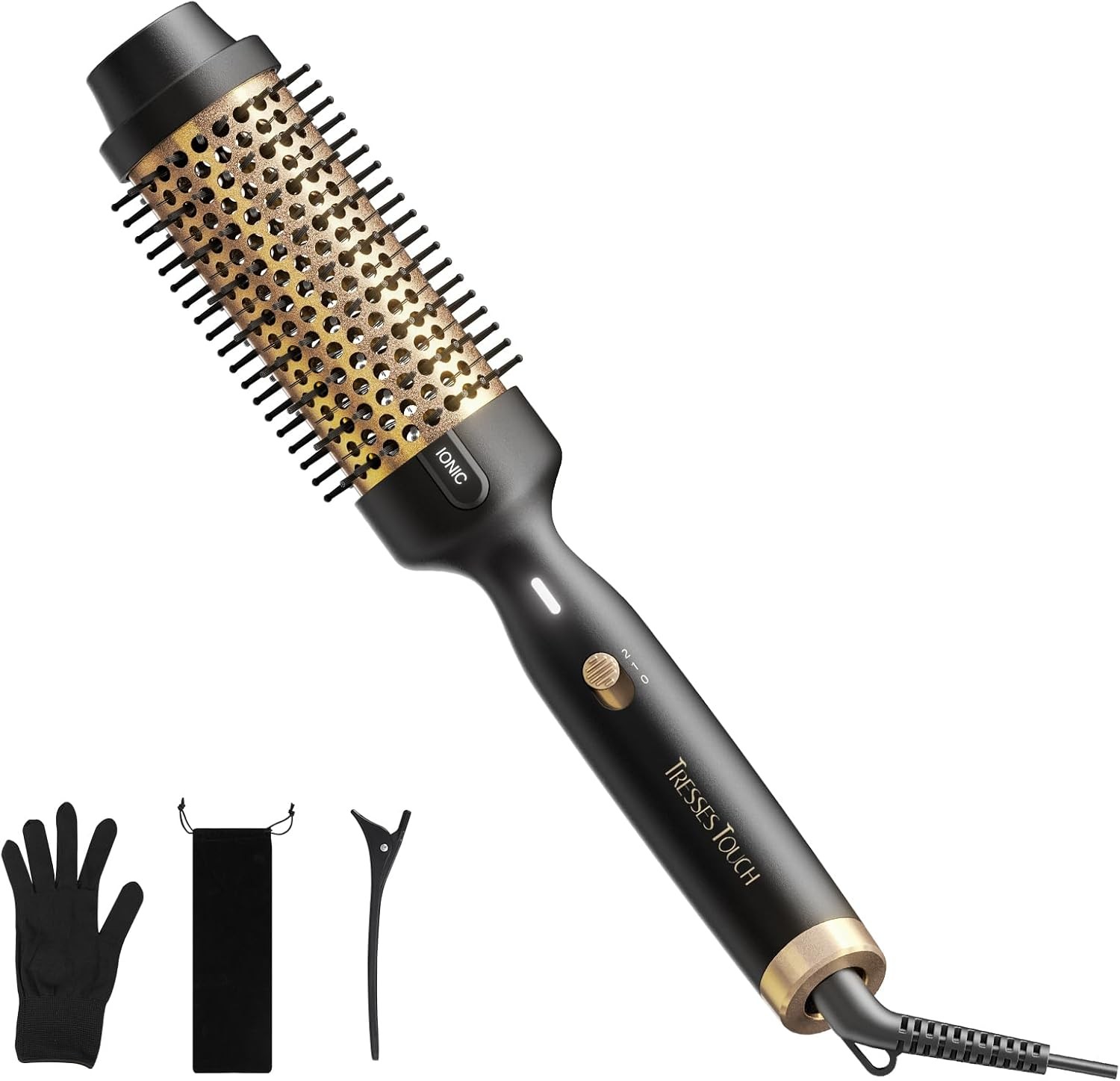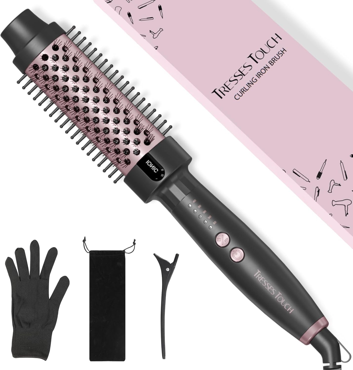 Tresses Touch 1.5 Inch Thermal Brush, Round Heated Hot Brush Blowout Ionic, Curling Brushes for All Hair, 2 Temperature Settings, Universal Voltage for Travel, Dual PTC, Not for Blow Drying, Rose Gold
