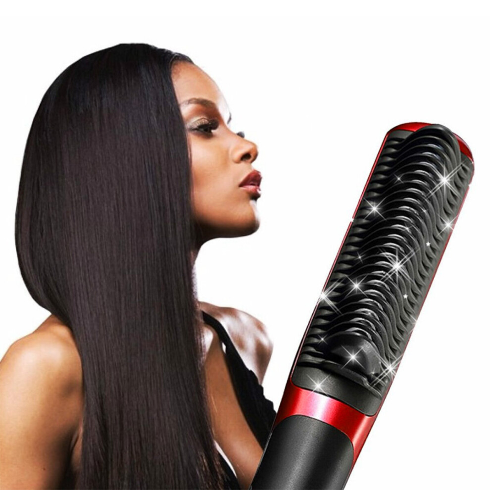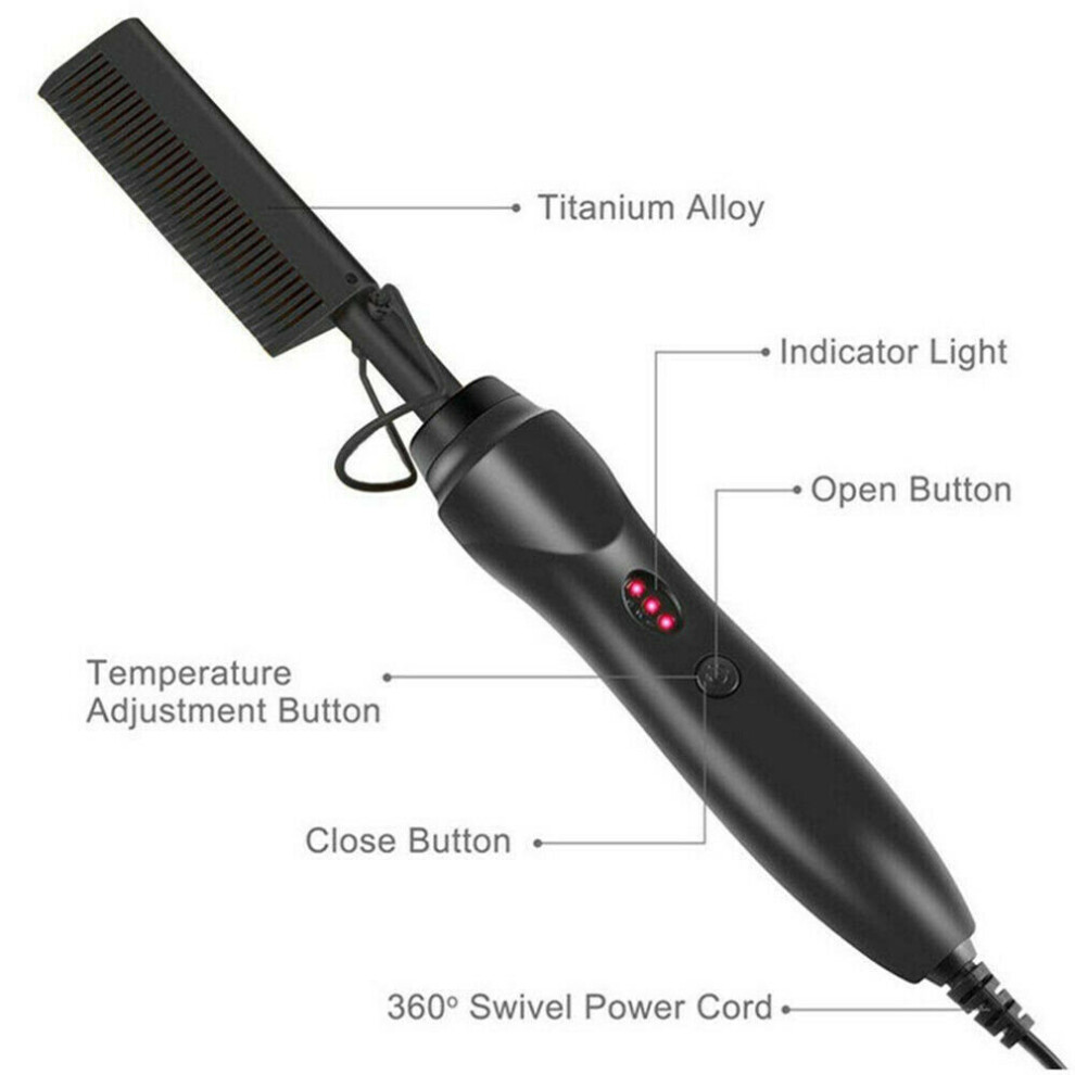 (black) Electric Heating Comb Curling Iron Heated Brush Copper Hair Straightener Comb