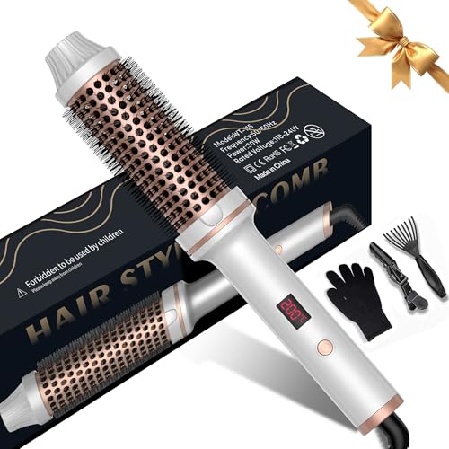 Terviiix Thermal Brush Ceramic Tourmaline Ionic Curling Iron, 38MM Volumizing Hot Brush Create Root Volume & Loose Curls, Digital Display 5 Temperatures Heated Volumizer, Dual Voltage