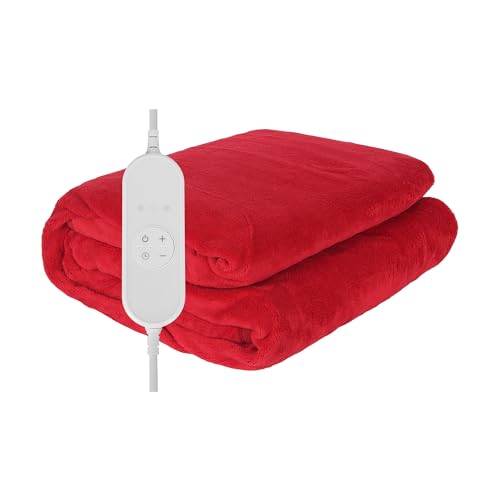 COZYBRITE Electric Heated Throw Blanket Fleece with 9 Heat Settings 9 Hours Timer Auto Shut-off 130x160cm Digital Control Machine Washable TK(160X130)/1.4m2-19S-DT-ST (Red)