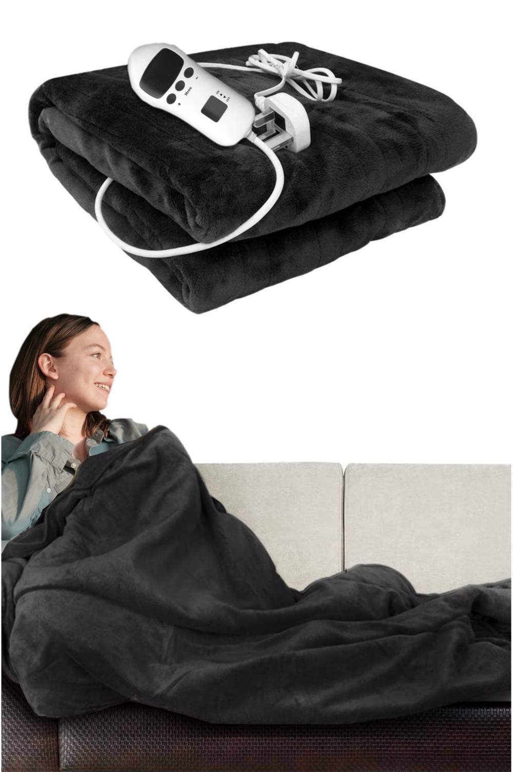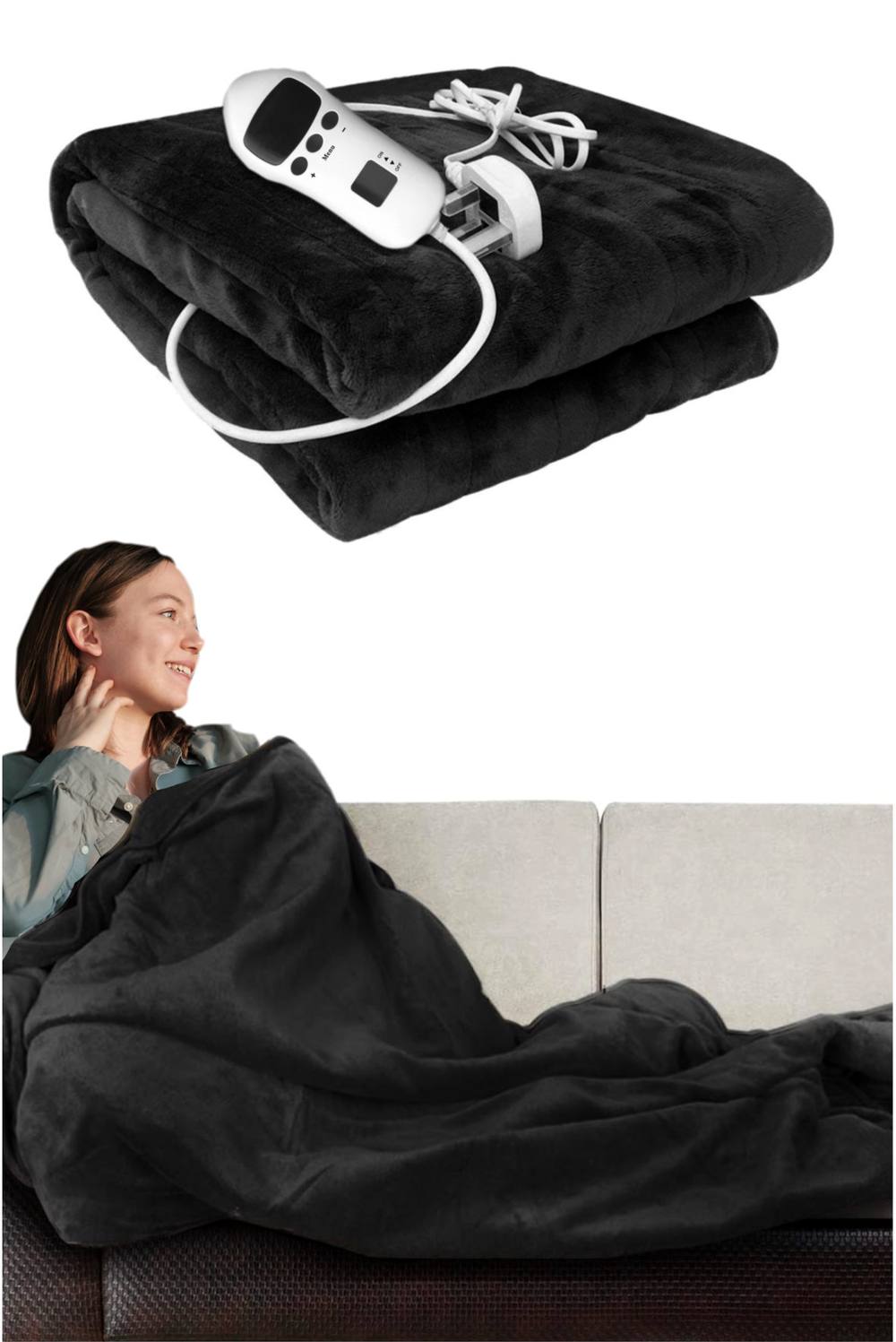Ezysleep Super Soft Cosy Heated Fleece Throw Blanket With Adjustable Control in Black