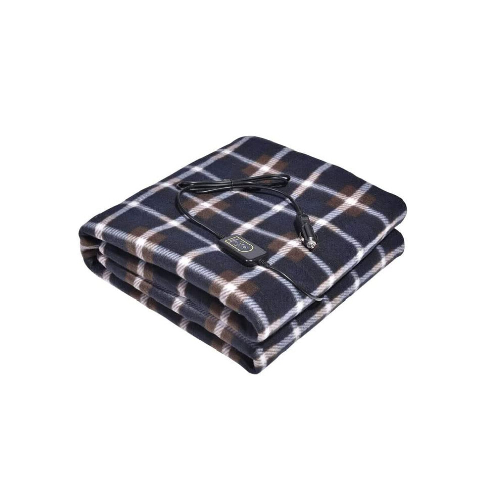 12V Heated Fleece Car Blanket with Timer and Adjustable Heat Levels for Car Truck SUV Blue Plaid
