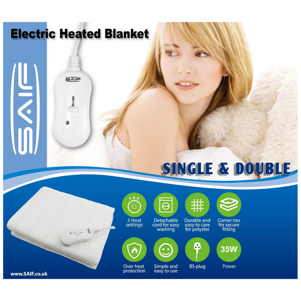 Electric Blanket Heated DOUBLE Under Bed Comfort Detachable Controller with 3 Heat Settings Polyester White Super Cosy Washable Fleece Heated Blanket