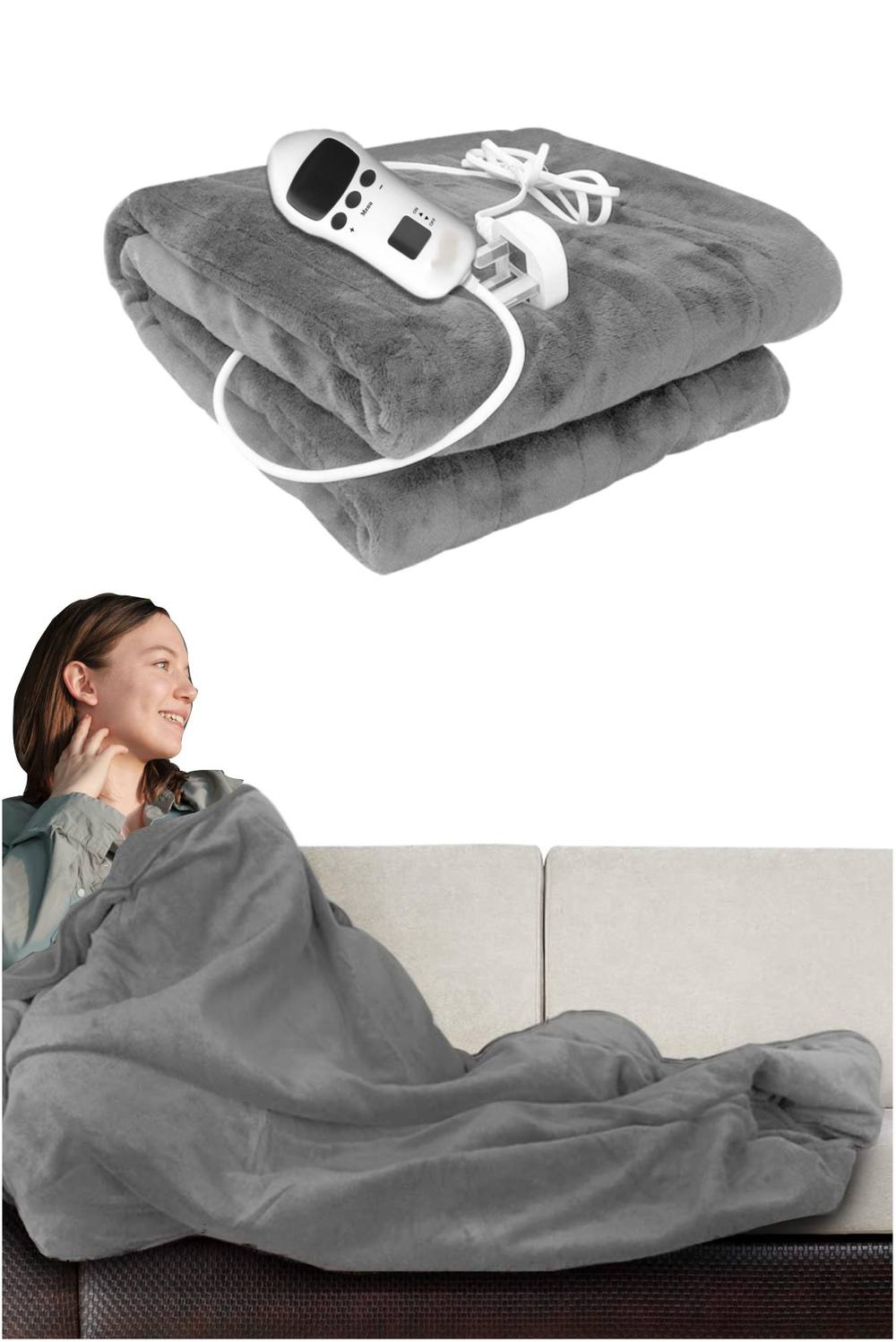 Ezysleep Super Soft Cosy Heated Fleece Throw Blanket With Adjustable Control in Grey