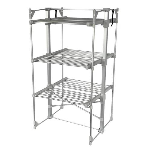 VVLXRIC Clothes Airer Indoor Folding, Fast Drying Overheating Protection Electric Heated Clothes Airer Dryer Indoor, Time Saving Foldable Clothes Drying Rack Heated Wet Weather,Grey