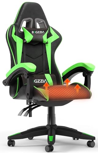 Ergonomic Gaming Chair with Adjustable Height, Reclining Feature, Headrest, and Lumbar Support for Adults (Heated, Green)