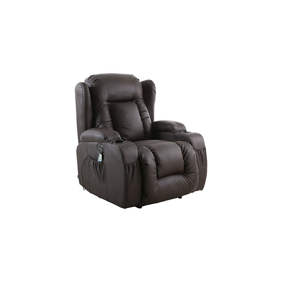 More4Homes CHESTER ELECTRIC HEATED MASSAGE RECLINER BONDED LEATHER CHAIR SOFA GAMING HOME ARMCHAIR (Brown)