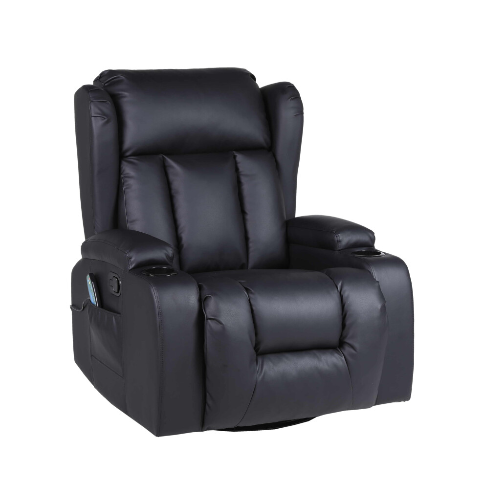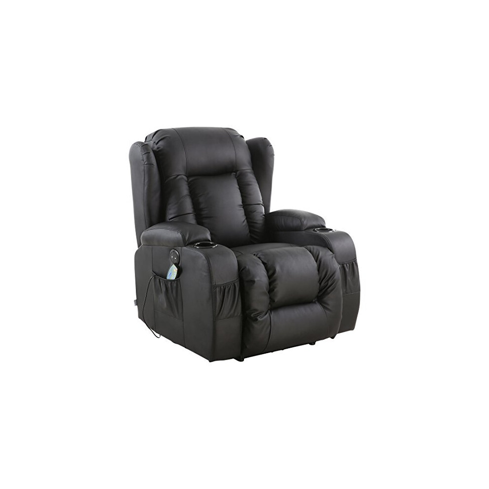 More4Homes CHESTER ELECTRIC HEATED MASSAGE RECLINER BONDED LEATHER CHAIR SOFA GAMING HOME ARMCHAIR (Black)
