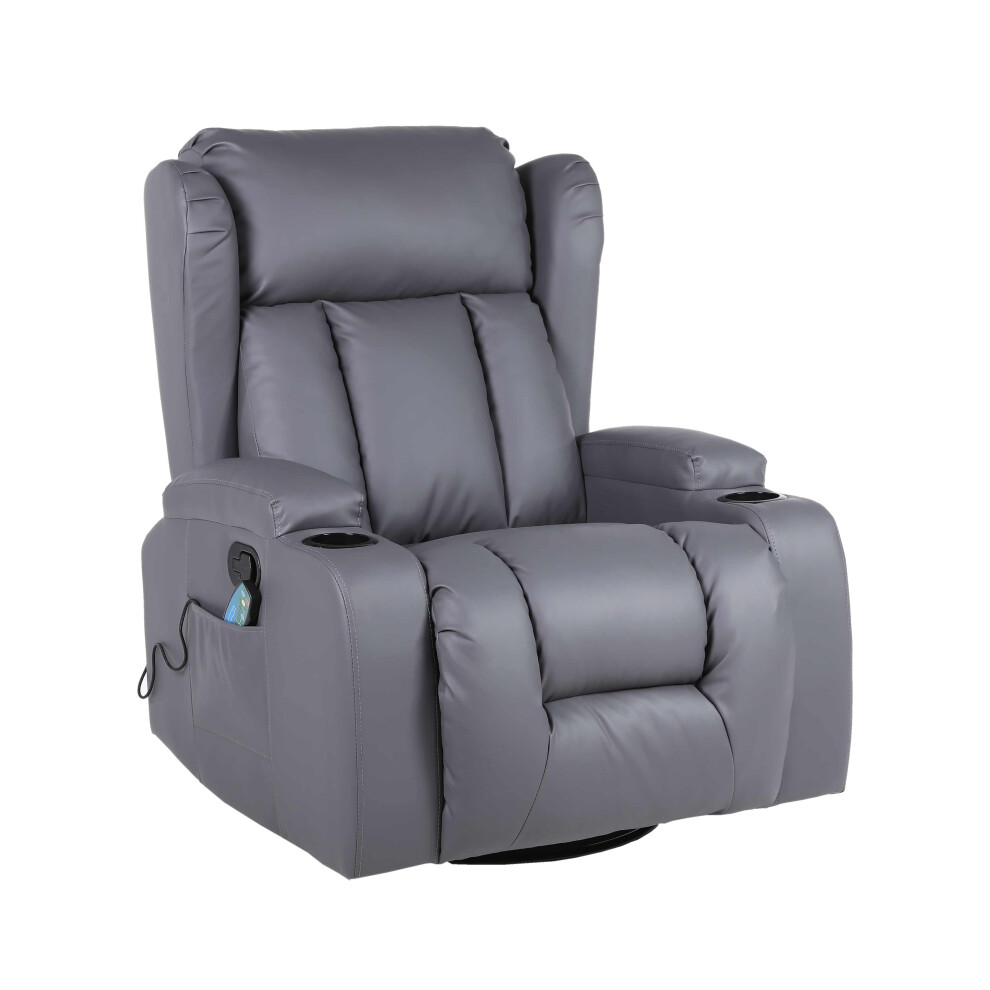(Grey) CAESAR 10 in 1 LEATHER RECLINER MANUAL ARMCHAIR MASSAGE HEATED GAMING WING CHAIR