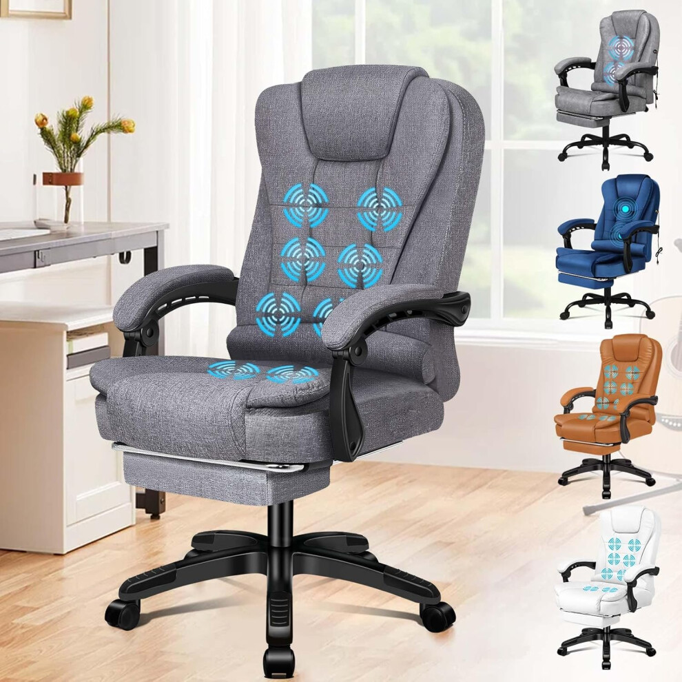 (Archie - Grey (Linen), Upgraded 8-Point Massage) Office Chair with 8-point Massage Seat Heated, PC Desk Gaming Chair with Armrests Footrest High Back