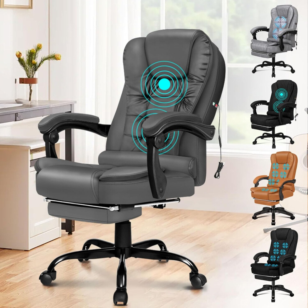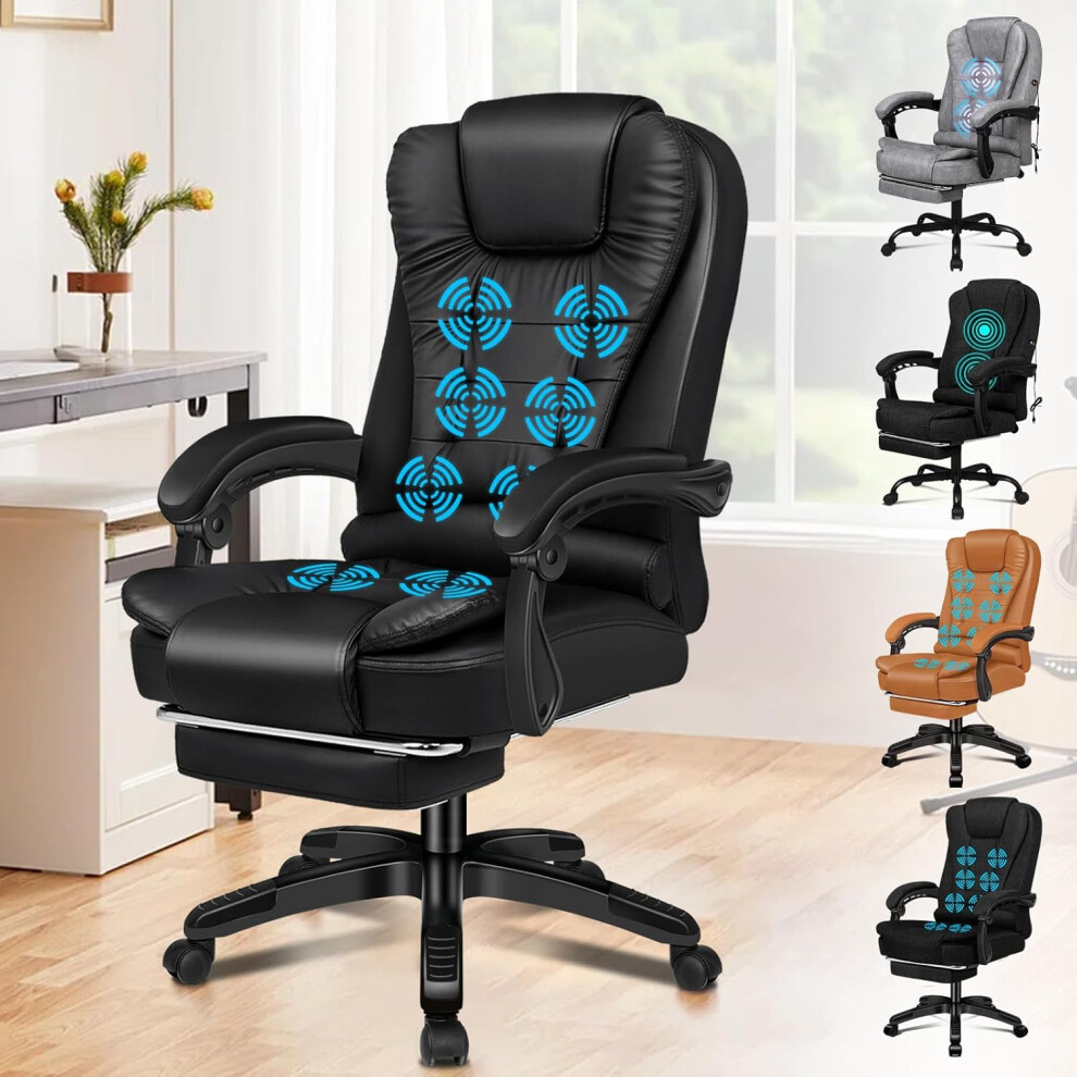 ELFORDSON Executive Office Chair with 8-point Massage Seat Heated, PC Desk Gaming Chair with Armrests Footrest High Back 150° Recliner Tilt Padded Swivel Fabric Linen, Black