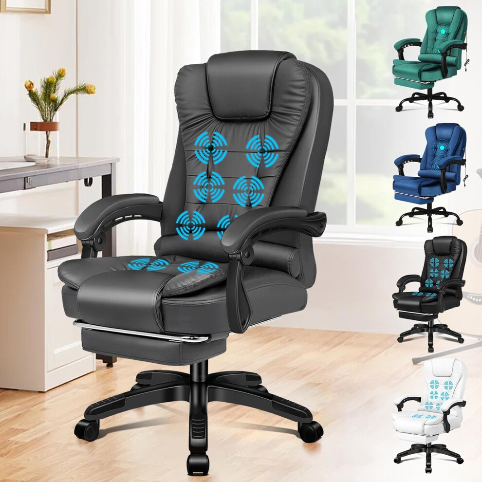 ELFORDSON Executive Office Chair with 8-point Massage Seat Heated, PC Desk Gaming Chair with Armrests Footrest High Back 150° Recliner Tilt Padded Swivel PU Leather, Black