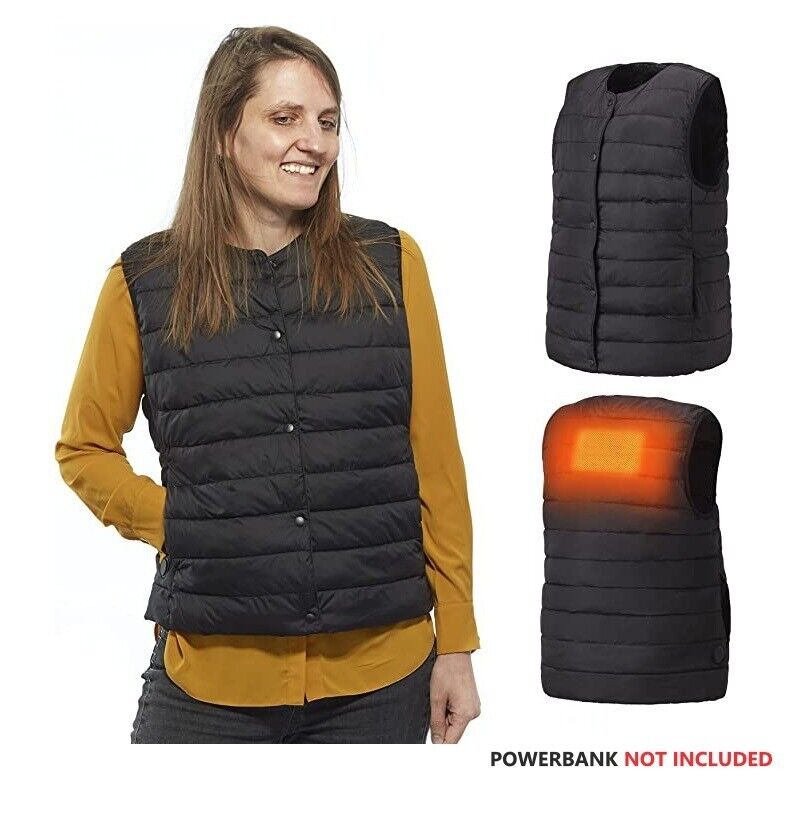 Women Ladies USB Heated Gilet Bodywarmer Puffer Vest Lightweight Small UK 10-12