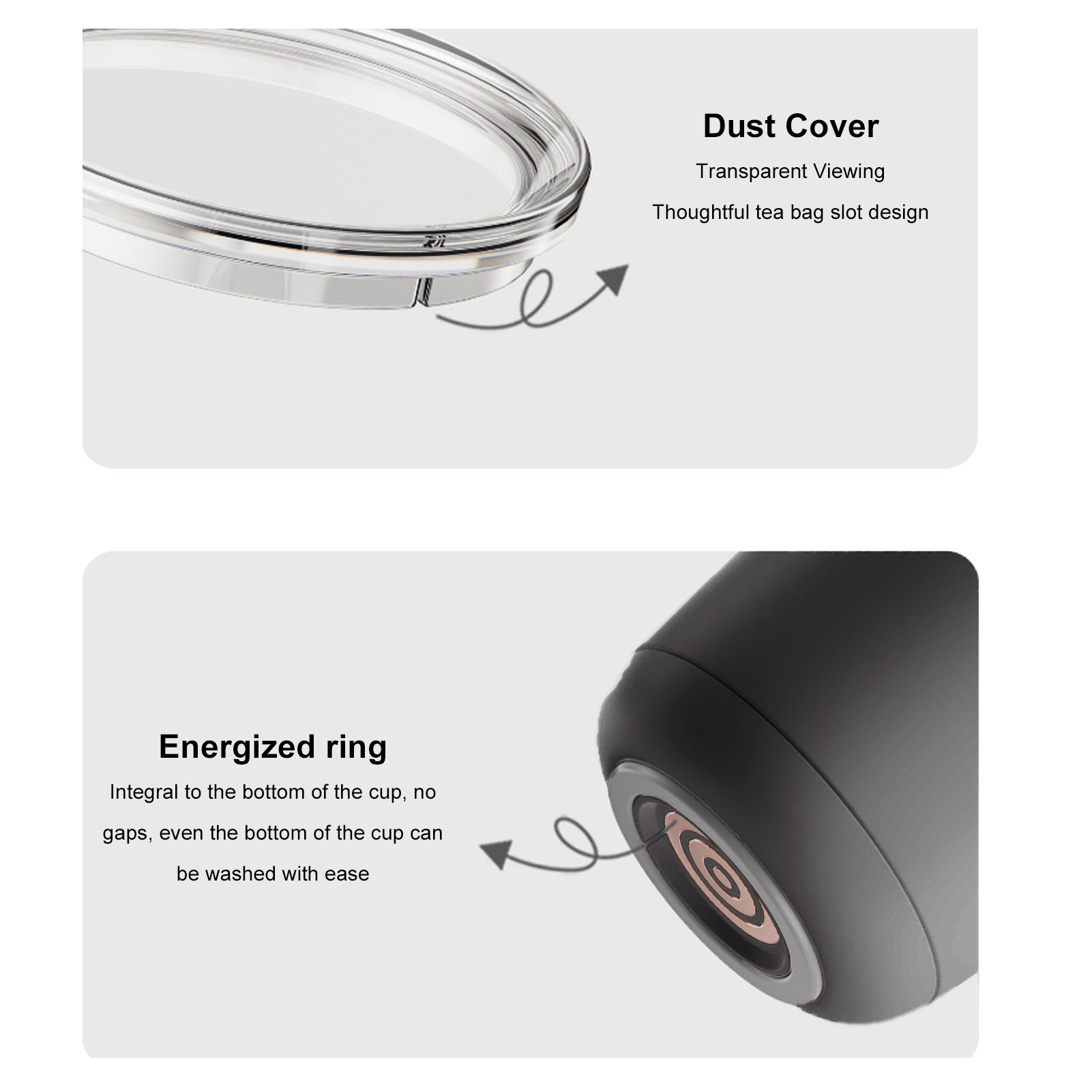 ♮Electric Heated Travel Mug 450ml Smart Temperature Control Low Noise Black