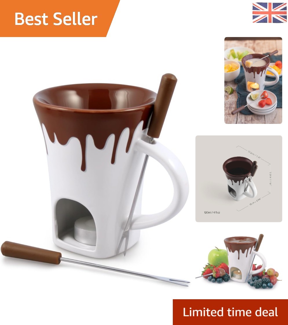 Ceramic Chocolate Fondue Mug Set - Tealight Heated, Unique Gift