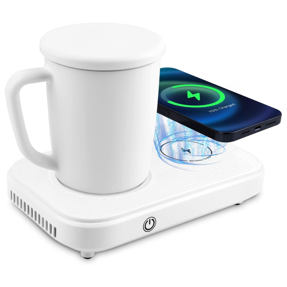 3 In1 Smart Self Heated Refrigeration Coffee Mug Wireless Charger Base Thermostatic Coaster for Office Desk/ Plug
