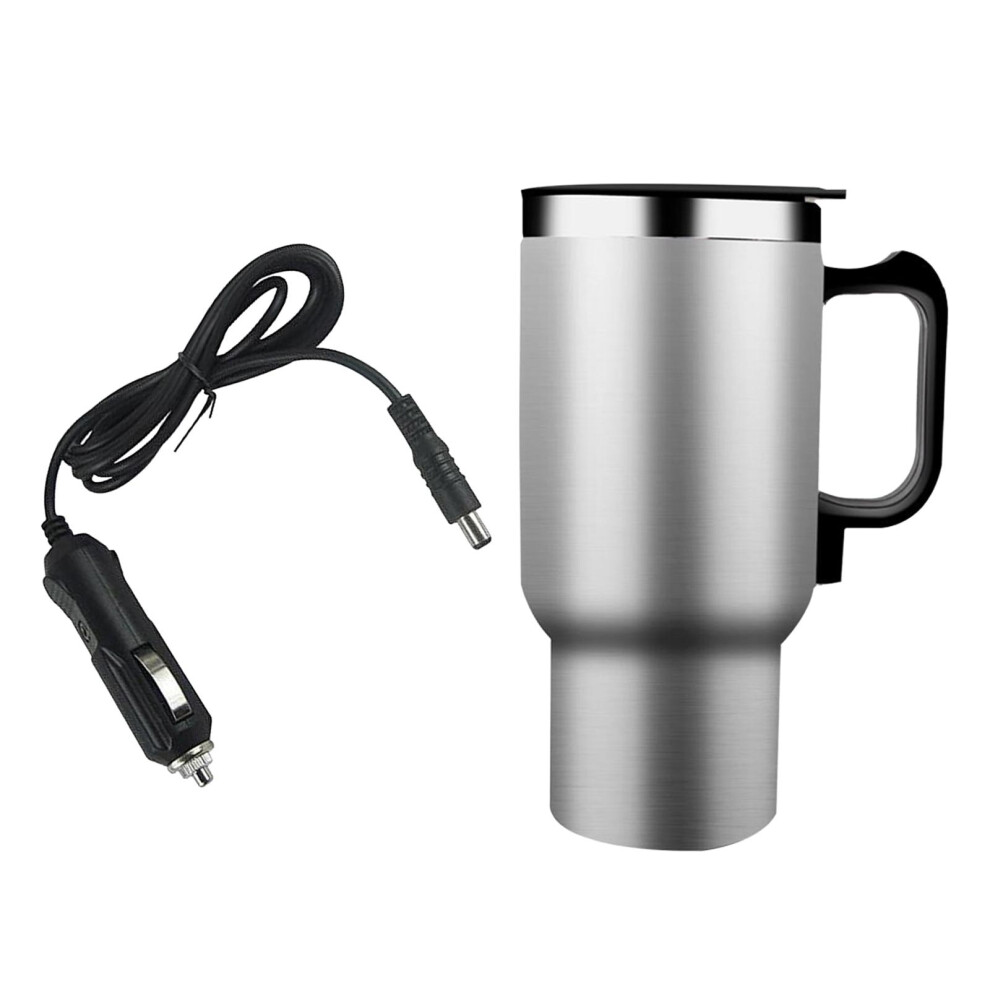 Car Electric Cup, 12V 450ml Electric Mug Stainless Steel Travel Heating Cup Coffee Tea Car Cup Insulated Heated Mug with Cigarette Lighter Cable